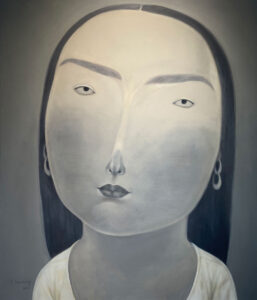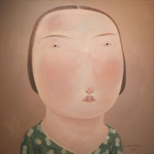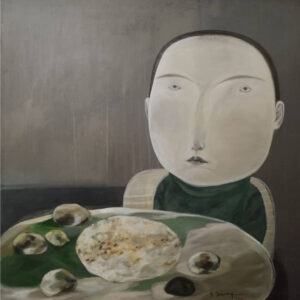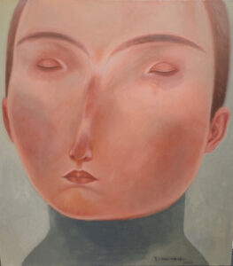 Youssef’s work is characterised by the distinctly rounded faces of women and children whom he depicts expressionless, using dusky earthtones.